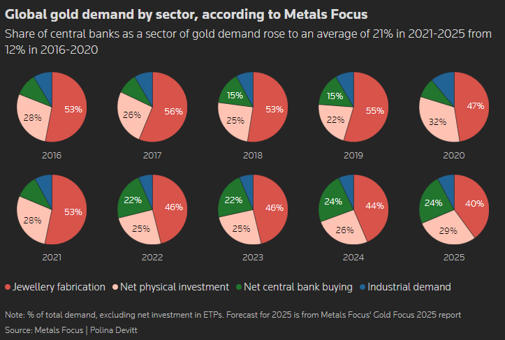 Secondo quanto riportato da “Reuters“, una quota consistente della domanda attuale proviene dalle banche centrali dei mercati emergenti, in particolare da Cina e Russia. L’obiettivo è duplice: da un lato, diversificare le riserve valutarie e ridurre l’esposizione al dollaro; dall’altro, creare un “cuscinetto” contro eventuali shock finanziari o sanzioni internazionali.